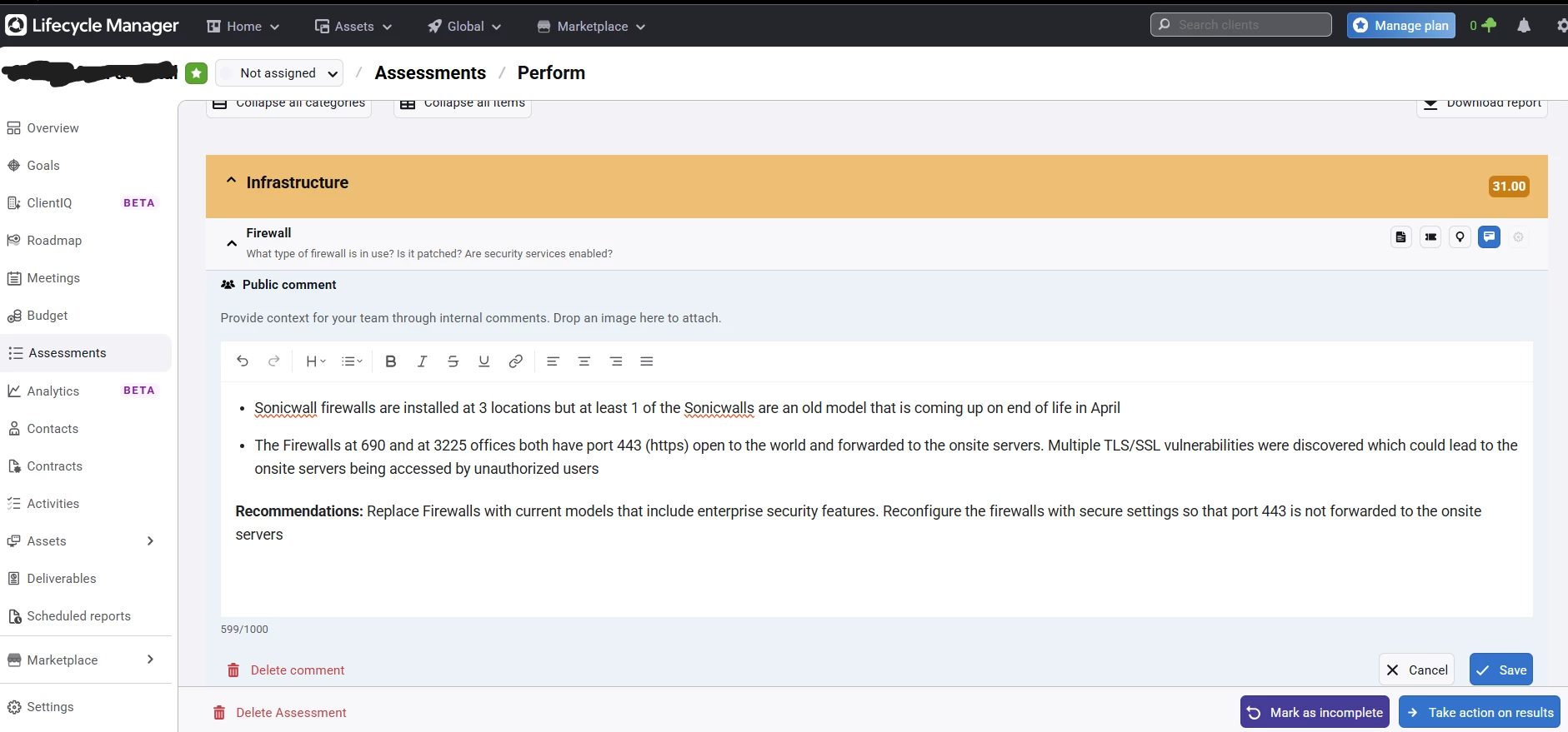 We need the assessment reports to keep the formatting when exporting to pdf. Support confirmed that the library they use for creating pdfs does not natively support rich text so it extracts the public comments to plain text. This makes the reports look less professional and hard to read.